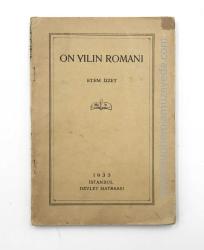 ETEM [ETHEM] İZZET [BENİCE] (1903-1967), Maarif Vekâleti - Devlet Basımevi, İstanbul, 1933. Özgün karton kapağında, çok temiz durumda, 20 x 14, 170 sayfa. 1921-1964 yılları arasında etkin olan Cumhuriyet devri Türk edebiyatının popüler yazarlarından Ethem İzzet Benice'nin "On Yılın Romanı" adlı bu romanı, ideolojik iki romanından biridir. Roman tekniği bakımından zayıf olan ve romanla tarih kitabı arasında salınan bu eserinde yazar, Kemalist ideolojiyi kurgu içinde verme amacı gütmektedir. Romanda Cumhuriyet ideolojisinin devrin edebiyatına etkisi gözlemlenebilmektedir., . Edebiyatı amatör tarafı olarak gören yazar; aşk, ideoloji, macera ve cinayet konulu toplam on beş roman kaleme almıştır. (Kaynak: Türk Edebiyatı İsimler Sözlüğü). -- Türk edebiyatı Erken dönem Cumhuriyet Türkiyesi Edebiyat Roman İlk baskılar Propaganda