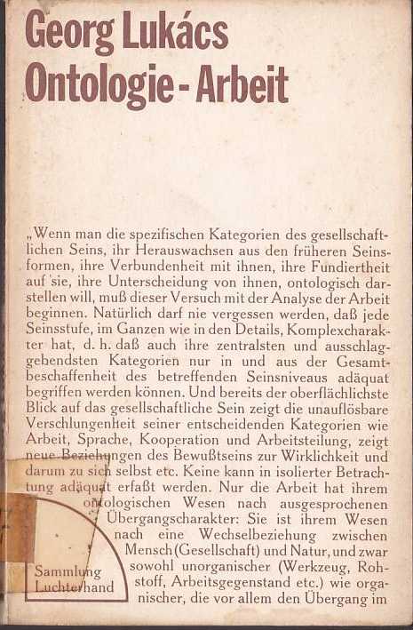 Ontologie Arbeit, György Lukacs tarafından kaleme alınmıştır. Kitap 1973 yılında Luchterhand Verlag tarafından [Almanya] 2026030014711 ISBN kodu ile yayınlanmıştır. Satışta olan kitap, yayınevinin 1. baskısıdır. 164 sayfadır. Sayfa bilgisi 2. Hamur olarak belirtilmiştir. Ontologie Arbeit adlı eser Almanca dilindedir.