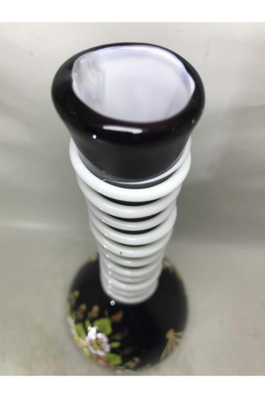 Opalin El yapımı vazo 23 cm boyunda başlıklı antika/koleksiyon objesinin menşei belirtilmemiştir. Objenin ait olduğu dönem bilinmeketedir.