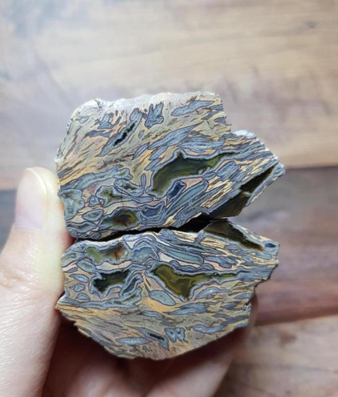 Opalize Taşlaşmış Ahşap Çifti: Mavi Bantlı Agatize Ahşap - Ağırlık: 169g - Benzersiz Koleksiyonluk Nadir Parça Kütle, dün kitantik’te satışa sunulmuştur.