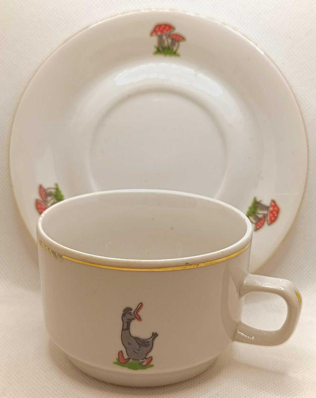Ördek ve Mantar desenli porselen fincan ve tabağı