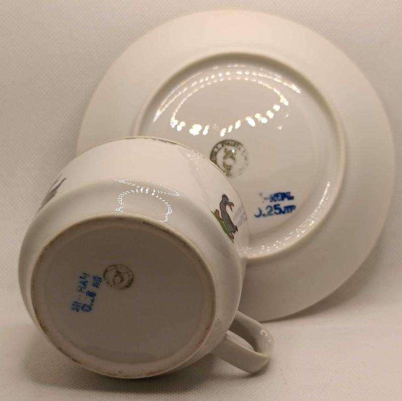 Ördek ve Mantar desenli porselen fincan ve tabağı başlıklı antika/koleksiyon objesi Avrupa menşe’lidir. Objenin ait olduğu dönem bilinmeketedir.