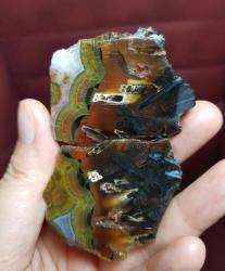 Ordu Yeşili Bantlı Çubuk Akik | Cilalı Yarım Akik | Benzersiz Koleksiyonluk ve Şifa Taşı - Ağırlık: 59g - Benzersiz Koleksiyonluk Nadir Parça Kütle