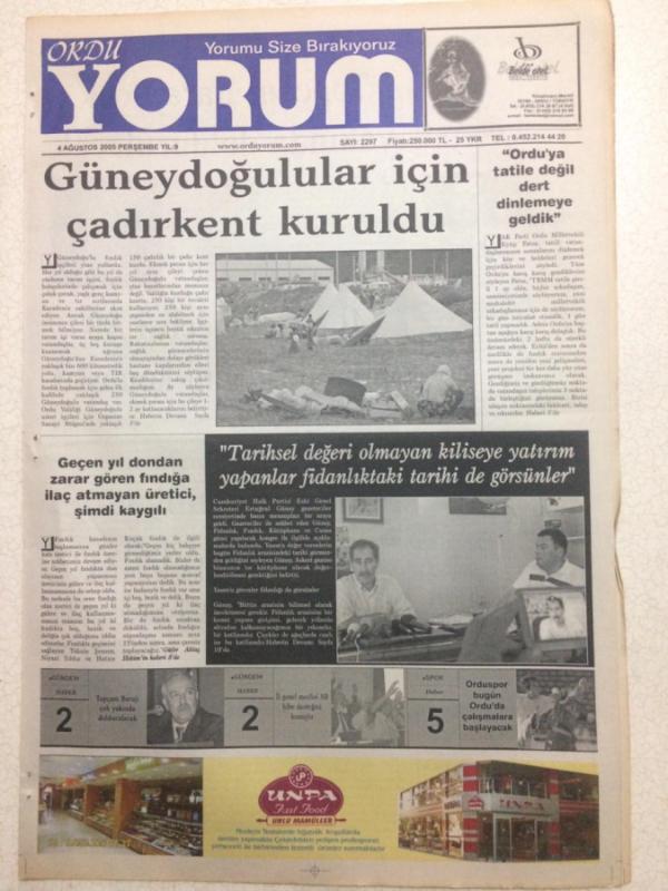 Ordu Yorum Gazetesi 4 Ağustos 2005 - Güneydoğulular İçin Çadır Kent Kuruldu GZ23510, en son 19 gün önce güncellenmiştir.