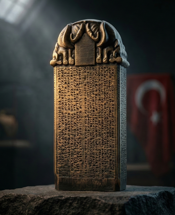 Tarihin Taşlaşmış Sesi: Orhun Kitabeleri Anıtı Sadece bir dekorasyon objesi değil, Türk milletinin binlerce yıllık tarihine, kültürüne ve devlet geleneğine bir saygı duruşu niteliğindeki Orhun Kitabeleri anıtı, masanızın veya kitaplığınızın en değerli parçası olmaya adaydır. Kadim Kök Türk metinlerinin ruhu, bu özel eserde vücut bulmuştur. Malzeme Yapısı: Dayanıklı, kaliteli ve ABS plastik malzeme polyester dolgu doluluğu. Özel Renk İşçiliği: 3 boyutlu derinlik sağlayan, antik bronz, eskitme altın ve simli gümüş boya tonlarının harmanıyla tarihi bir doku kazandırılmıştır. Tasarım Detayları: Üst Bölüm: Orijinal kitabelerde bulunan, Türk kozmolojisini ve egemenliğini simgeleyen Hakan (Kağan) ve Hatun figürlerinin stylized, ram's head (koç başı) formundaki süslemeleri. Gövde: Kök Türk alfabesiyle (Runik harflerle) yazılmış Bilge Kağan veya Kül Tigin metinlerinin temsili, yüksek çözünürlüklü ve detaylı kabartma yazısı. Sunum: Fotoğraftaki gibi doğal, kaba dokulu sunulmaktadır Anlamlı Bir Katkı Bu üründen elde edilen gelir , Düzce’deki şehit yakınlarımızın ve gazi ailelerimizin hizmetlerinde kullanılmaktadır. Bu anıtı tercih ederek sadece kadim Türk tarihini evinizde yaşatmakla kalmıyor, aynı zamanda vatan uğruna bedel ödeyen ailelerimize doğrudan destek oluyorsunuz. Ofisinizde veya kütüphanenizin baş köşesinde bu vefa nişanesini onurla sergileyebilirsiniz. Gazibey Sanat Atölyesi Güvencesiyle. Sipariş ve detaylı bilgi için DM üzerinden iletişime geçebilirsiniz.