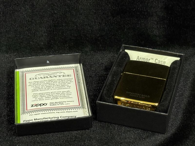 Orijinal 2023 Zippo Armor Case Titanium Gold Plating başlıklı antika/koleksiyon objesi Amerika menşe’lidir. 2000 ve sonrası dönemine aittir.