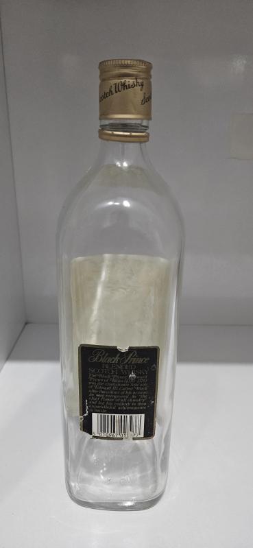 Orijinal Black Prince Select Scotch Whisky— Boş Cam Şişe (Vintage / Koleksiyonluk), Cam şişe temiz, etiketi ve baskısı okunaklıdır; koleksiyon ya da vitrinlik olarak uygundur. Şişenin etiketi ve gövdesi üzerinde “Bottled in Scotland” yazısı, marka logosu, altın–siyah etiket ile klasik “Select Scotch Whisky” ibaresi mevcuttur.1 litre büyüklüğünde tipik Scotch Whisky şişesi.