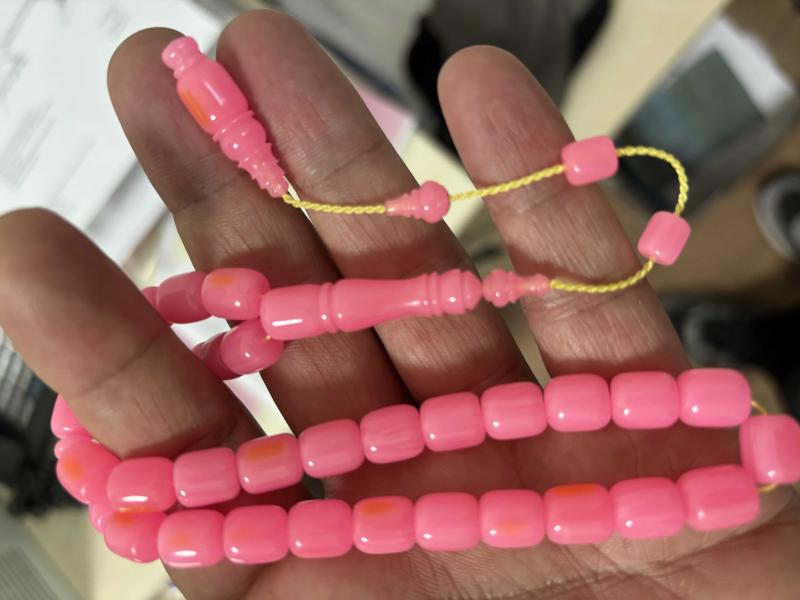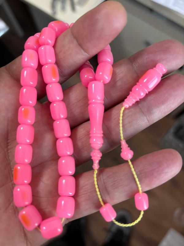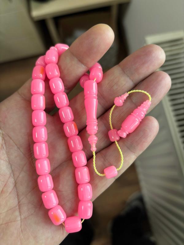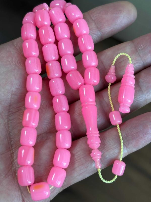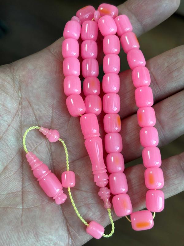 Orijinal eski objeden katalin tespih 8.2*9.6 mm kapsul model eski alman katalin tespih kondiksiyon çok yüksek işçilik bana ait çok güzel nadir pembe renkte çekimi çok güzel eski antika katalin objeden yapılm orjinal ürün seneler geçtikçe değerlenecek ürün. 07 mm delim