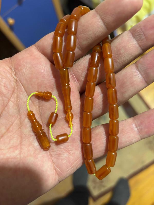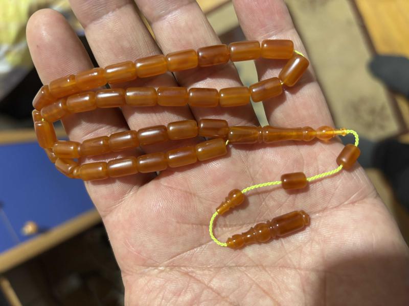 Obje fotoğraflarını ekledim İşçilik bana ait Orijinal eski amerikan objeden katalin tespih muazzam renkte ful hareli hamur yapısına sahip 6.5*10.5 mm kapsul model eski amerikan katalin tespih kondiksiyon çok yüksek işçilik bana ait çok güzel nadir objeden malzeme renk doku mükemmel üründür. Oldukça Maliyetli üründür. çekimi çok güzel objeden. orjinal ürün seneler geçtikçe değerlenecek ürün. Koleksiyonluk ürün al malın iyisini çekme kaygısını 06 mm ip yolu