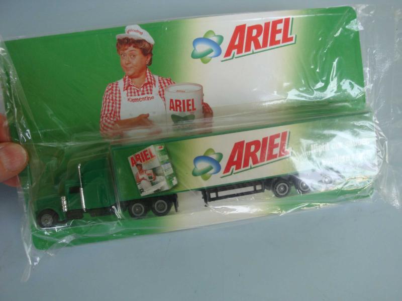 " Orjinal LİSANSLI " ARIEL ( Alman Deterjan Firması ) LOGOLU MAKET OYUNCAK TIR / KAMYON ( AMBALAJINDA ) ÖN ŞÖFÖR MAHALLİ METAL , DORSE KASA SERT KALIN PLASTİK AMBALAJINDA Uzunluk : 21 cm.