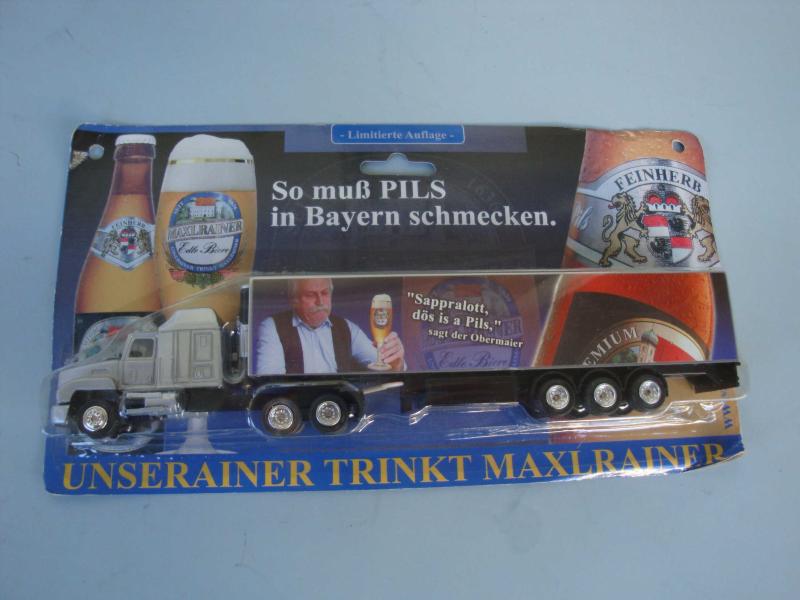 " Orjinal LİSANSLI " ( FEINHERB & MAXLRAINER - Alman Bira Firması LOGOLU ) MAKET OYUNCAK TIR/KAMYON ÖN ŞÖFÖR MAHALLİ METAL , DORSE KASA SERT KALIN PLASTİK AMBALAJINDA Uzunluk : 21,5 cm.