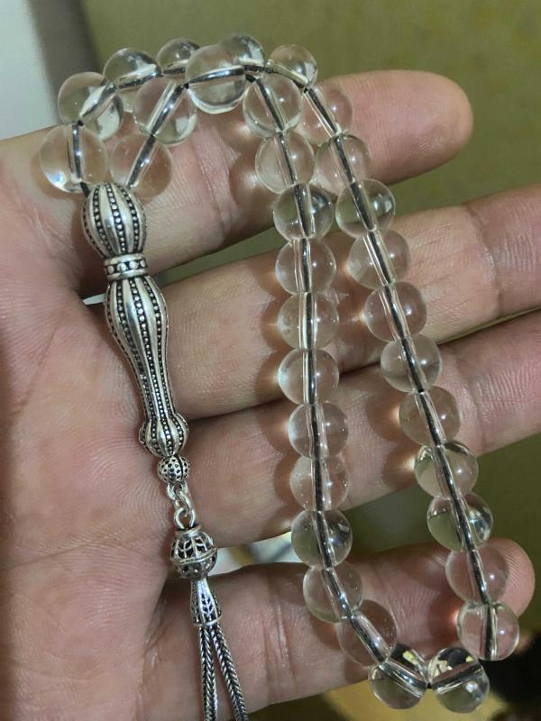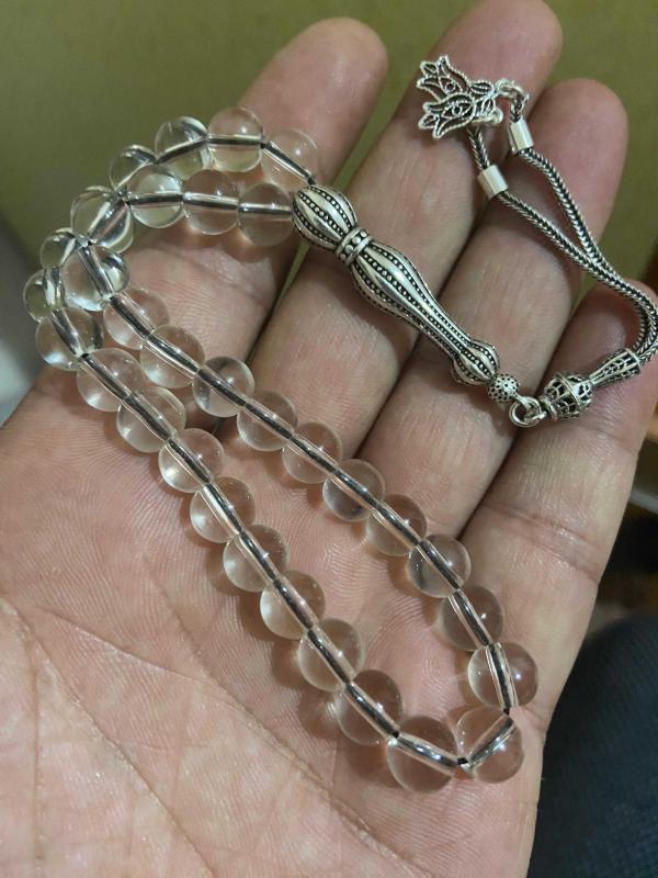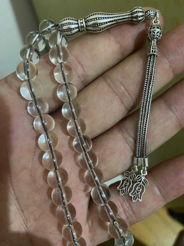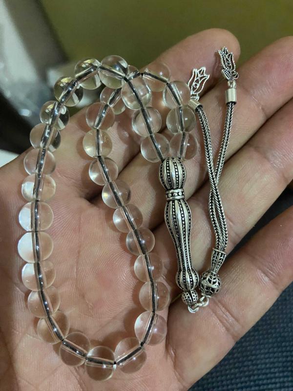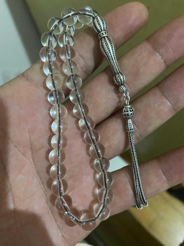 Orijinal Necef taşı doğal taş tespih 8 mm küre toplam ağırlık 29.80 gram 925 ayar gümüş imame ve püskül doğal taş Necef taşı yaz kış buz gibi soğuk olan bi taştır vücudun elektriğini alır insan psikolojisine yaralı doğal taştır.