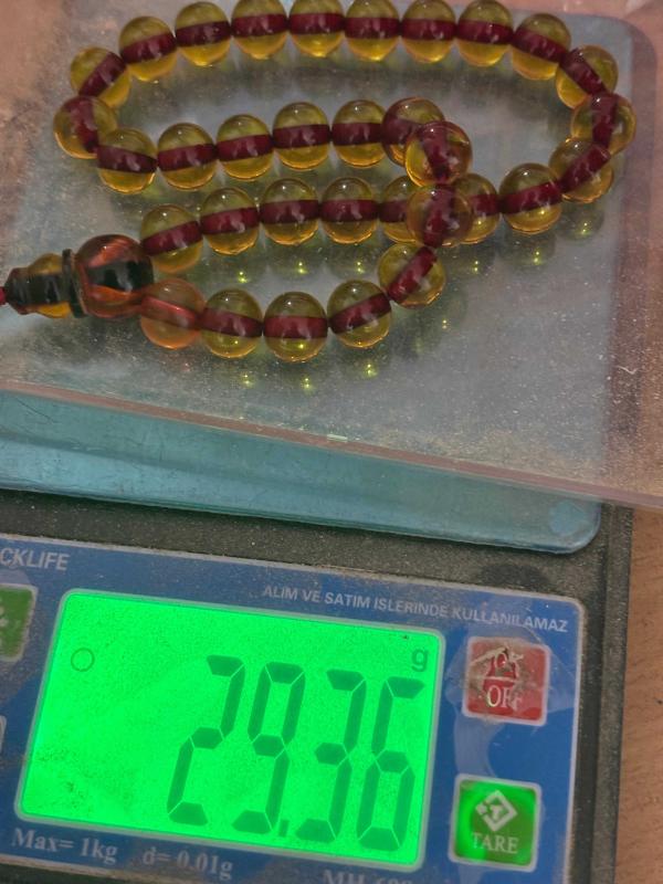 Açıklamayı iyi okuyalım lütfen Orijinal kolyeden dizayn muazzam bir eser Osmanlı ateş kehribar tespih imame bir habbesi işçilik bana aittir . usta işçilikli usta şuanda tespih yapmamaktadır. Eski işçiliktir. 11*10 mm 29 küsür gram civarı Osmanlı sıkma kolyeden tespih muazzam bi eser piyasa değeri çok yüksek olan bi ürün alan kazanır. Fiyat çok uygun kaçırmayın derim çok güzel bi görsele sahip ait piyasa değeri yüksek ürün al malın iyisini çekme kaygısını
