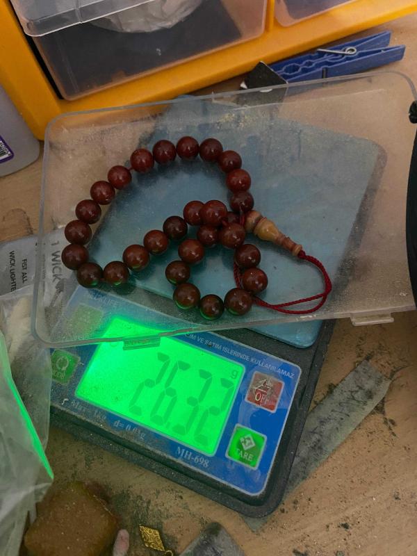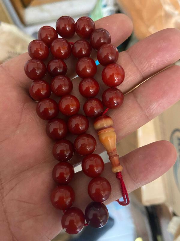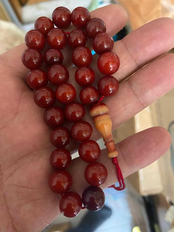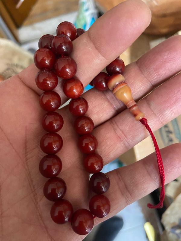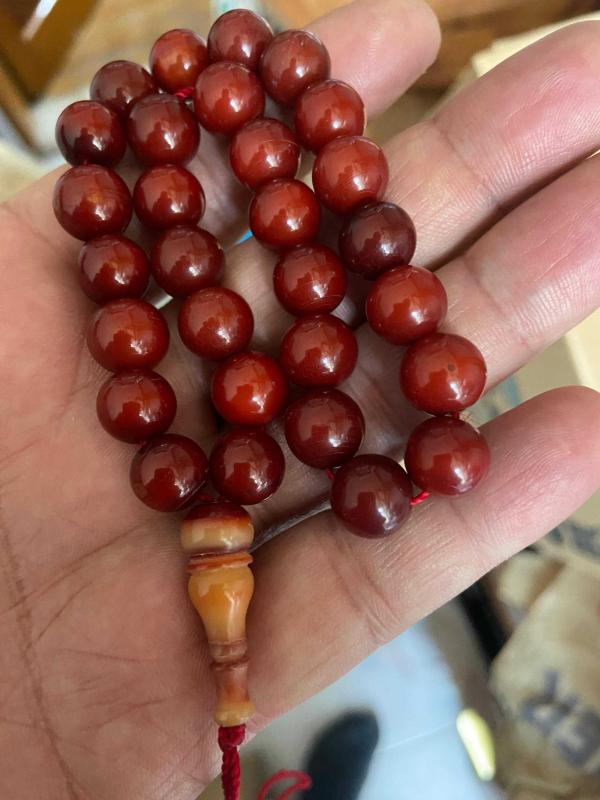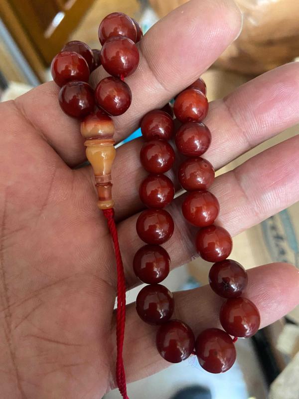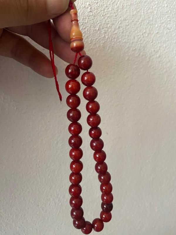 Açıklamayı iyi okuyalım lütfen Orijinal tespihten Osmanlı sıkma kehribar tespih işçiliği eski yapım olup dönem tespihidir. Çıkrık torna izleri üzerinde renk almış vişneye gelmiş nerde ise 10.5 mm olup 26 küsür gram civarı olup; kokulu hamurdur damarsızdır. İmame kendi habbesinden olup imame işçilik bana aittir. 29 habbedir
