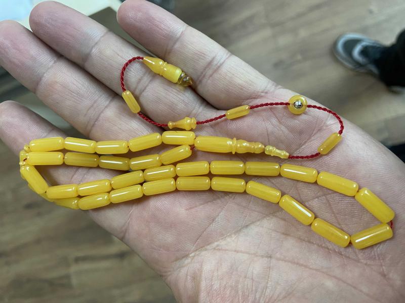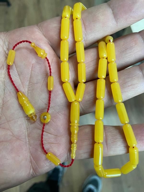 Orijinal Osmanlı sıkma tespih güncel işçilik ustası yahya arslan usta işçilikli imzası üzerinde 5* 12 mm 10 gram civarı çok güzel bir görsele sahip buğulu hamur habbeden sıfır yapı Hitame çivisi kırık olduğu için aynı malzemeden tarafımca yapıldı. Çok kibar bi tespih alan pişman olmaz gün geçtikçe değerlenecek ürün