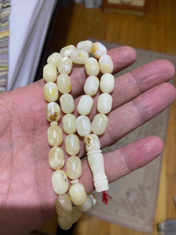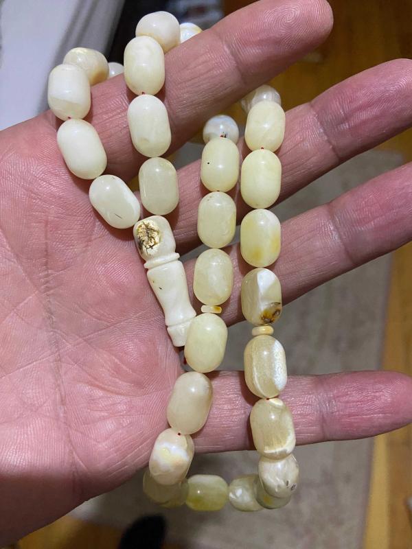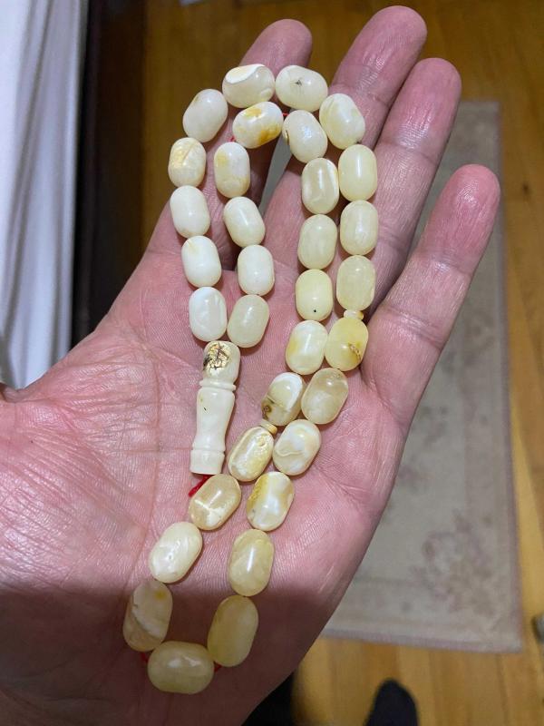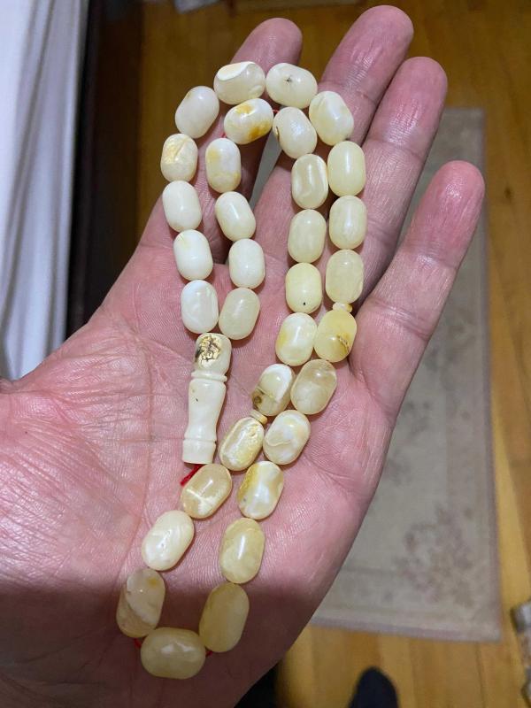 Orjinal Rus damla kehribar tespih 9.5*14 mm kayadan damla 28 gram büyük ölçü ballı kaymaklı kireç gibi damla kayadan kaynaklı ufak tefek kusurları vardır mis gibi çam reçine kokulu alan çok memnun kalır.
