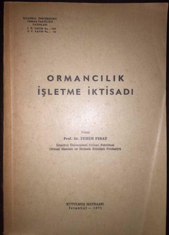 Ormancılık İşletme İktisadı, Fehim Fırat tarafından kaleme alınmıştır. Kitap 1971 yılında İstanbul Üniversitesi Orman Fakültesi tarafından [İstanbul] yayınlanmıştır. 336 sayfadır. Ormancılık İşletme İktisadı adlı eser Türkçe dilindedir.