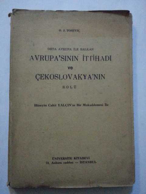 Orta Avrupa İle Balkan Avrupa'sının İttihadı ve Çekoslovakya'nın Rolü, Hüseyin Cahid Yalçın'ın Bir Mukaddemesi İle, D. J. Toseviç tarafından kaleme alınmıştır. Kitap 1940 yılında Üniversite Kitabevi tarafından [İstanbul] yayınlanmıştır. Bu baskının çevirisi Hüseyin Cahit Yalçın tarafından yapılmıştır. 100 sayfadır. Sayfa bilgisi 100 s. olarak belirtilmiştir. Orta Avrupa İle Balkan Avrupa'sının İttihadı ve Çekoslovakya'nın Rolü, Hüseyin Cahid Yalçın'ın Bir Mukaddemesi İle adlı eser Türkçe dilindedir.