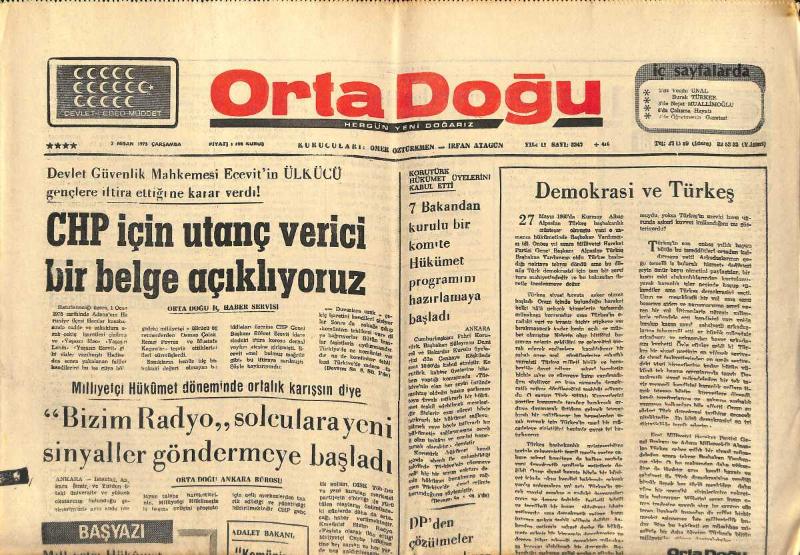 Orta Doğu Gazetesi 2 Nisan 1975 - CHP İçin Utanç Verici Bir Belge Açıklıyoruz - Milliyetçi Öğretmenler Eğitimde Reform İstedi! GZ139292, en son 26 gün önce güncellenmiştir.
