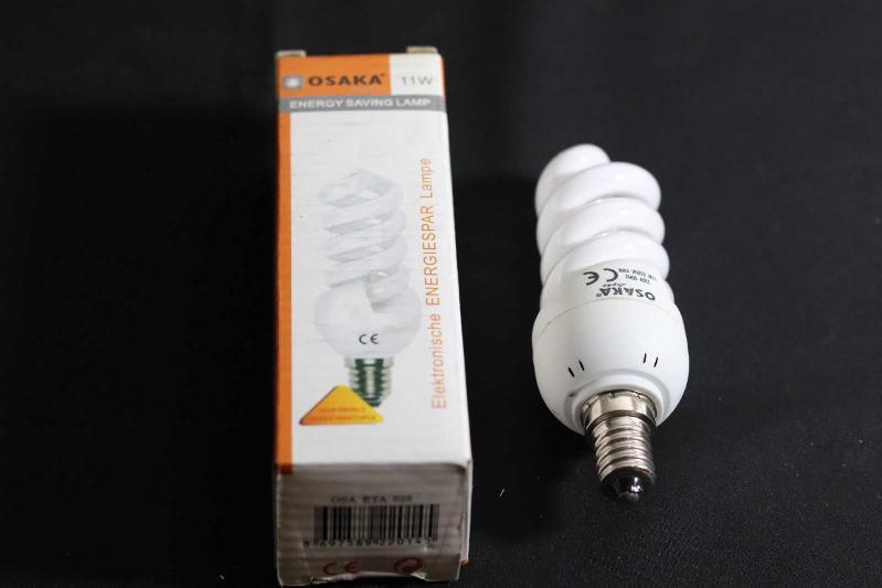 Osaka 220V 11W = 55W E14 enerji tasarruflu ampul. Beyaz ışık. başlıklı antika/koleksiyon objesinin menşei belirtilmemiştir. Objenin ait olduğu dönem bilinmeketedir.