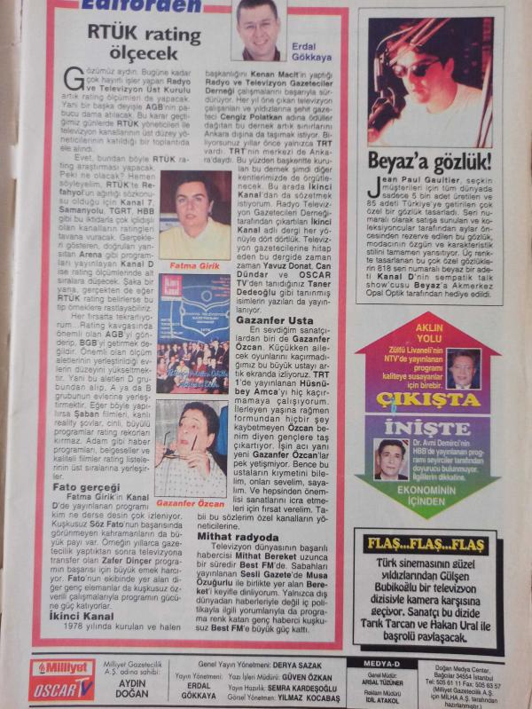 Oscar Tv Dergisi- 12-18 Nisan 1997 - Mehmet Çepiç - Pınar Özcan - Gazanfer Özcan - Fatma Girik - Pınar Özcan - Kadir İnanır - Erdal Gökkaya -