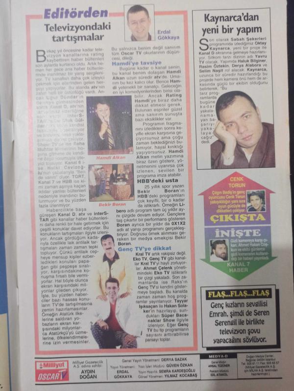 Oscar Tv Dergisi- 15-21 Şubat 1997 - Saynur Kuruç - Oktay Kaynarca - Hamdi Alkan - Bekir Boran - Sermin Karaali - Toprak Sergen - Ebru Kutsal -