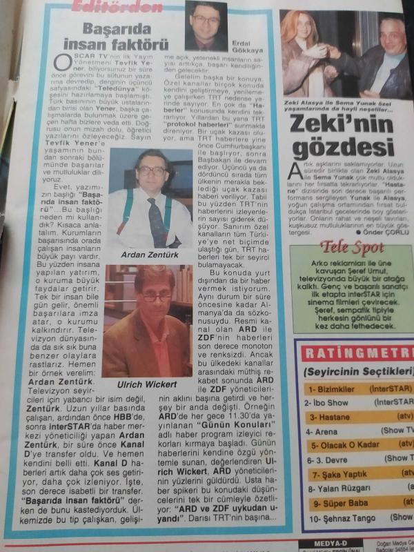 Oscar Tv Dergisi - 17-23 Aralık - Zeki Alasya - Sema Yunak - Ruhsal Öcal - İbrahim Tatlıses - Şebnem Özinal - Nevra Serezli - Şebnem Kısaparmak - adlı eser Türkçe dilindedir.