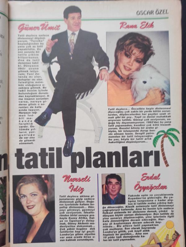 Oscar Tv Dergisi- 24 Haziran - 1 Temmuz 1995 - Nurseli İdiz - Meltem Cumbul - Yaprak Özdemiroğlu - Mehmet Ali Erbil - Erdal Özyağcılar - İpek Tuzcuoğlu -
