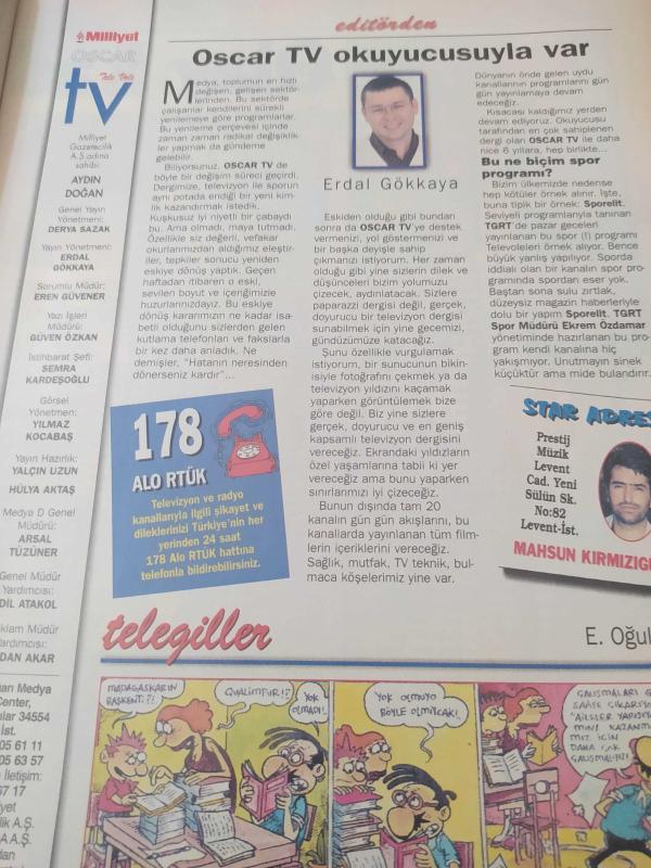 Oscar Tv Dergisi - 26 Eylül - 2 Ekim 1998 - Elif Dağdeviren - Aydan Burhan - Güner Ümit - Mustafa Sandal - Müslüm Gürses - Hilal Özdemir - Tehlikeli Yaratık - Arkadaşım Hayalet - Jack ve Sarah - Çaylak - Uzay Yolu 6 - Çılgın Max - Burun Kanıyorsa neler yapmalı - Bay Turnike geliyor - adlı eser Türkçe dilindedir.