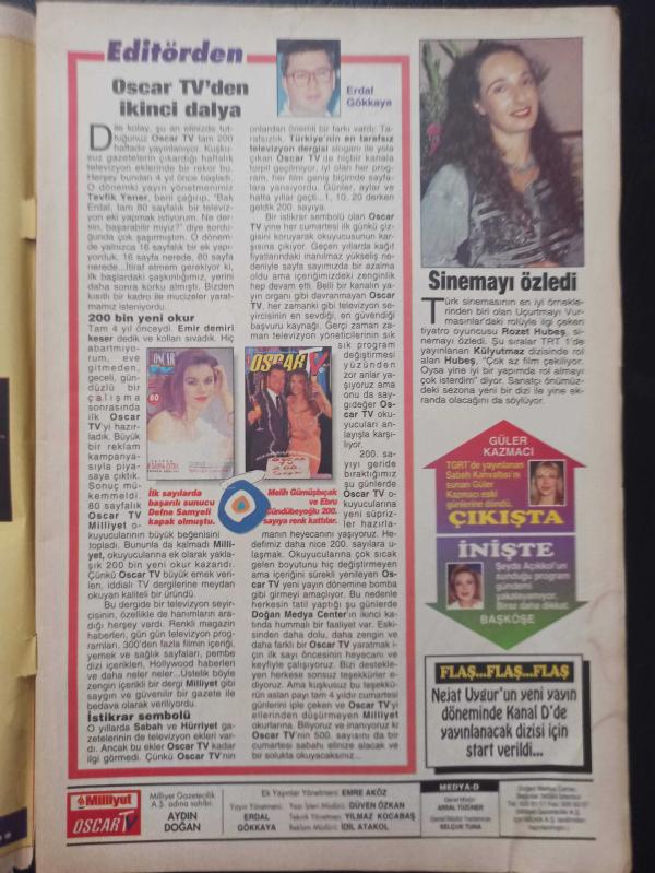 Oscar Tv Dergisi- 3-9 Ağustos 1996 - Ebru Cündübeyoğlu - Melih Gümüşbıçak - Mine Çayıroğlu - Volkan Severcan - Serdem Coşkun - Türkan Şoray -