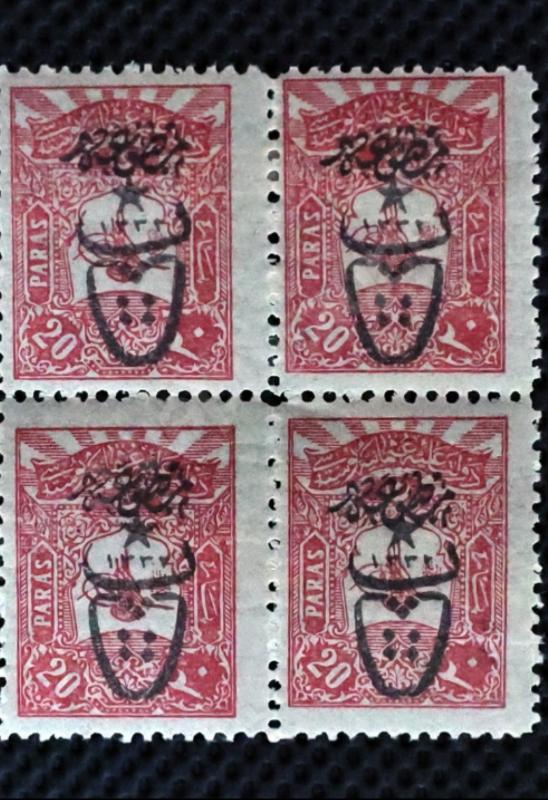 Osmanlı 1876 Ayyıldızlı Duloz 1 1/4 Kuruş (50 Para) Sürşarjlı Dörtlü Blok - Damgasız başlıklı antika/koleksiyon objesi Osmanlı menşe’lidir. 1860-1879 arası dönemine aittir.