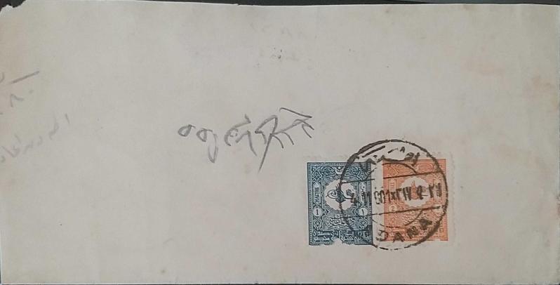 Osmanlı 1901 ZARF Adana'dan İstanbul'a gitmiş,1 & 2Piaster Osmanlı pullu Adana iki lisanlı ve varış damgaları ile,arkada wax mühürlü ,Nadir.