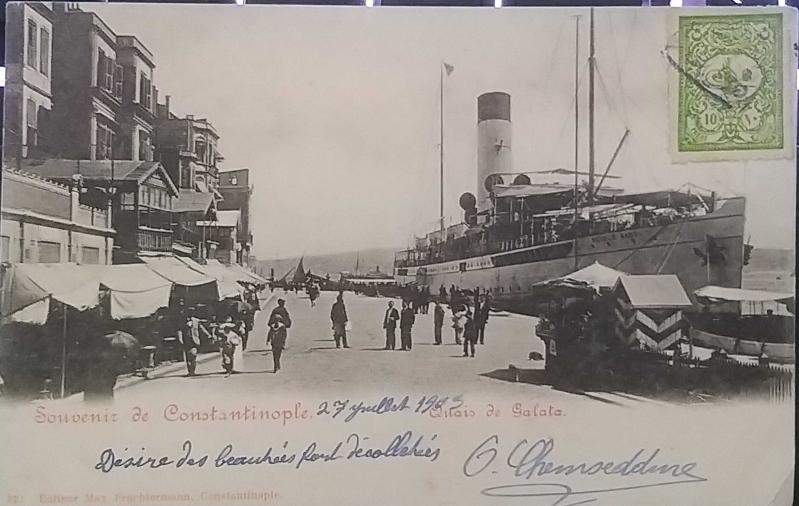 Osmanlı 1908 İstanbul Liman Boğaz Max.Fruchtermann ,Kartpostal, Osmanlı 10pia pul ve damgalarla Fransa'ya yollanılmış ,Çok Nadir.