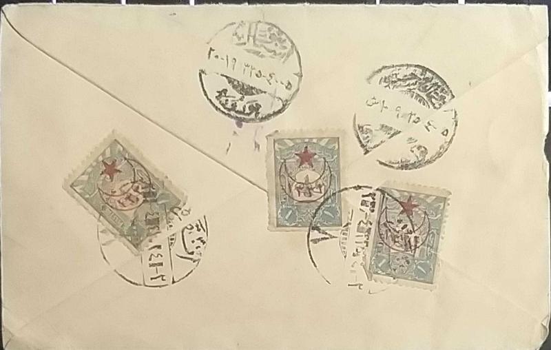 Osmanlı 1919 Londra Baskısı Sultan Reşad Tuğralı ve Ayyıldızlı Kayıtlı Mektup Zarfı 20 Paras Ankara'dan İstanbul'a çoklu pul ile gönderilmiş,Çok Nadir.