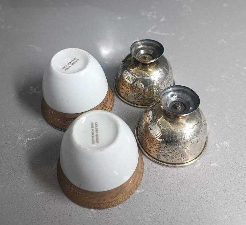 Üzerlerinde Tuğra ve Şah damgaları mevcut. Orjinal kadife kutusunda. Kondisyon oldukça yüksek. Fincanlar daha yakın zamana ait ve üzerlerinde ''Golden Queen Fine Porcelain '' damgaları var. *Ürünler %100 Orijinaldir.! *Yukarıda anlatımı yapılan ürünü satın almadan önce aklınıza takılan soruları hiç çekinmeden sorabilirsiniz.En kısa zamanda seve seve cevap veririz. *Sattığımız ürünlerin hepsi tarafımızdan garantilidir. *Hijyen nedeniyle İadesi yapılamayan ürünler şunlardır; ----Kozmetik ürünleri (Krem, losyon, parfüm, makyaj malzemeleri,vs) ----Mayolar ,İç Çamaşırları ve Giyim Eşyaları. *Kullanılmış, Vintage veya Antika olarak belirttiğimiz ürünler hiçbir zaman SIFIR ürün kondisyonunda değildir ve olmaları da beklenemez. Bu tip ürünlerin kondisyon detayı tarafımızdan ayrıntılı olarak verilecek ve mümkün olduğunca çok resimlenecektir.Vintage ve Antika ürünler,son 20 yıl içinde Amerika nın çeşitli Eyaletlerinde Antika evlerinden, Müzayede evlerinden veya Estate Sale olarak geçen Satış yerlerinden alınmıştır ve kendi özel kolleksiyonumuzdandır. *Patinasını kaybetmemesi için hiçbir antika ürünü temizlemiyoruz. *Alıcılar bizden ürün alırken bu şartları kabul etmiş demektir.! İYİ ALIŞVERİŞLER!!!