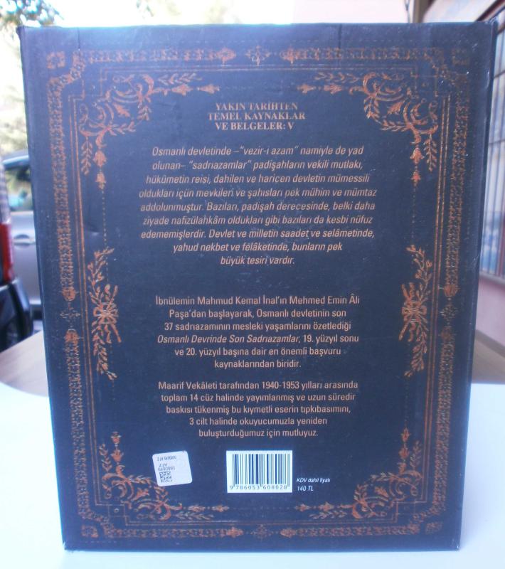 Osmanlı devletinde vezir-i azam namiyle de yad olunan sadrıazamlar padişahların vekili mutlakı, hükûmetin reisi, dahilen ve haricen devletin mümessili oldukları içün mevkileri ve şahısları pek mühim ve mümtaz addolunmuştur. Bazıları, padişah derecesinde, belki daha ziyade nafizülahkâm oldukları gibi bazıları da kesbi nüfuz edememişlerdir. Devlet ve milletin saadet ve selâmetinde, yahud nekbet ve felâketinde, bunların pek büyük tesiri vardır. İbnüleminMahmud Kemal İnalın Mehmed Emin Âli Paşadan başlayarak, Osmanlı devletinin son 37 sadrıazamının mesleki yaşamlarını özetlediği Osmanlı Devrinde Son Sadrıazamlar, 19. yüzyıl sonu ve 20. yüzyıl başına dair en önemli başvuru kaynaklarından biridir. Maarif Vekâleti tarafından 1940-1953 yılları arasında toplam 14 cüz halinde yayımlanmış ve uzun süredir baskısı tükenmiş bu kıymetli eserin tıpkıbasımını, 3 cilt halinde okuyucumuzla yeniden buluşturduğumuz için mutluyuz.