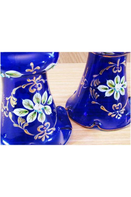 1900 BAŞLARI OSMANLI DÖNEMİNDEN KALMA,FRANSIZ MENŞEİLİ EL YAPIMI BOHEM CAM ÇİFT VAZO ÇOK GÜZEL SANATLI KABARIK MİNE İŞLEMELİ İŞÇİLİKLİ,ALTIN KONTURLU KIRIK,ÇATLAK YOK,SAĞLAM VE TEMİZ, AĞIZ GENİŞLİKLERİ 11cm,YÜKSEKLİKLERİ 14cm Renk: MAVİ Kategori İsmi: Vazo