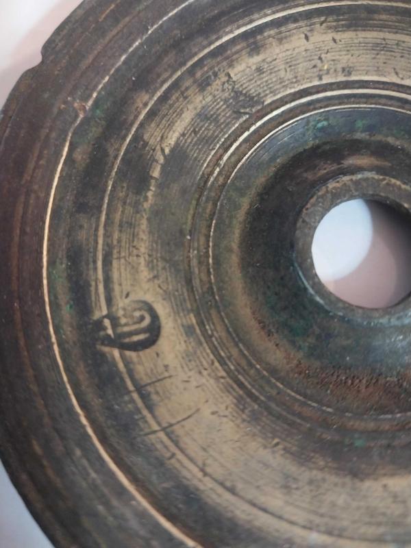 Osmanlı dönemine ait bronz veya pirinç bir dirhem ağırlığıdır. Kullanım Amacı: Bu ağırlıklar, çarşı ve pazarlarda terazi ile malların tartılması için kullanılırdı. Özellikleri: Genellikle disk şeklinde olup, merkezinde bir delik bulunur. Damgalar: Üzerinde Osmanlı damgaları (tuğra, ay-yıldız gibi) bulunur ve bu damgalar ağırlığın doğruluğunu gösterir. Tarihi Değer: Osmanlı ticaret ve ekonomi tarihinin önemli parçalarıdır ve günümüzde koleksiyon değeri taşırlar.