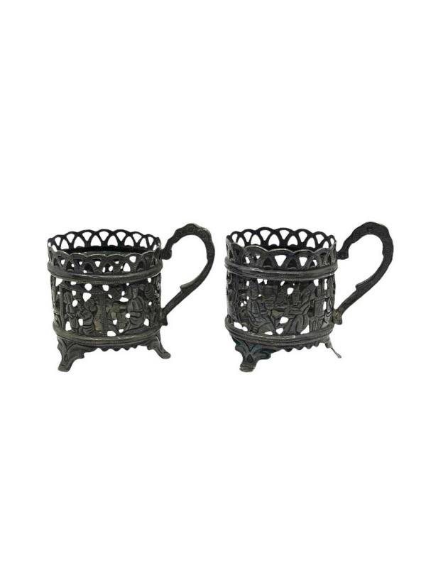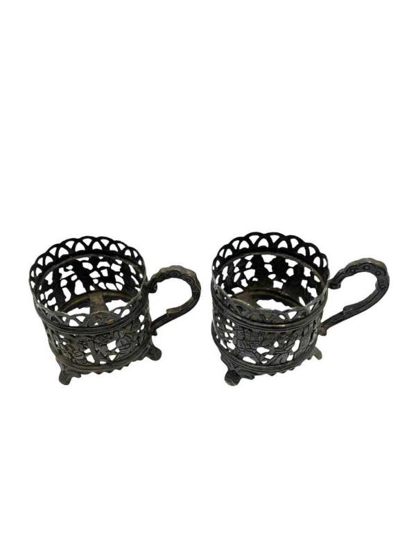 Osmanlı Dönemi Gümüş Fincan Zarfı 2 Adet AOB4238 başlıklı antika/koleksiyon objesinin menşei belirtilmemiştir. Objenin ait olduğu dönem bilinmeketedir.