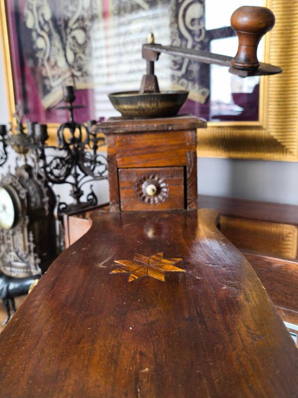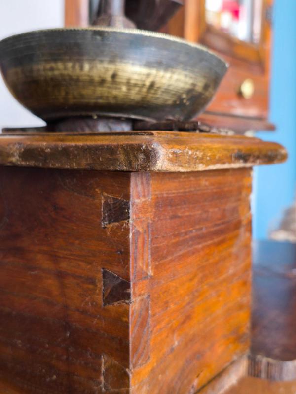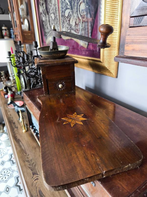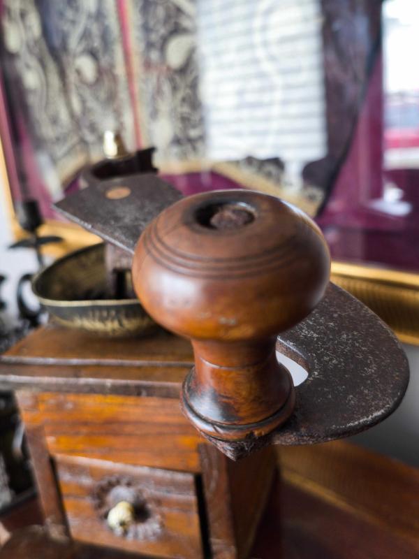 Çok iyi korunmuş Osmanlı Kahve değirmeni. 100 yaşından büyük kırlangıç geçme tekniği ile ahşap işçiliği Metal mekanizma. 60 cm boy. Uyguna!!