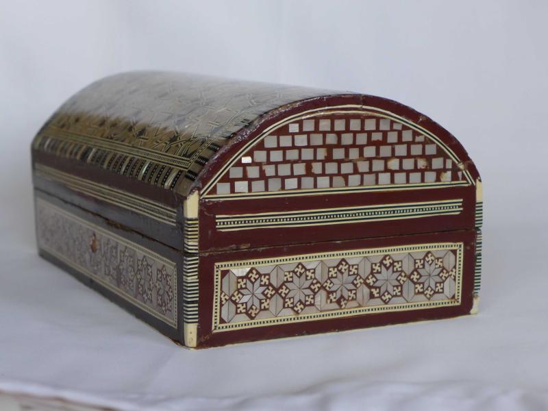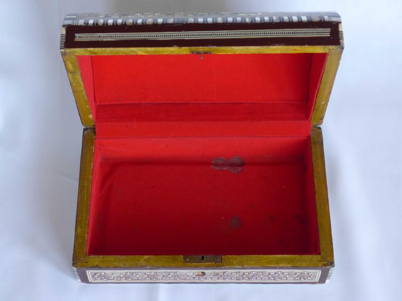 Osmanlı Dönemi Sedef İşlemeli Büyük Boy Ahşap Kutu başlıklı antika/koleksiyon objesi Osmanlı menşe’lidir. 1900-1919 arası dönemine aittir.