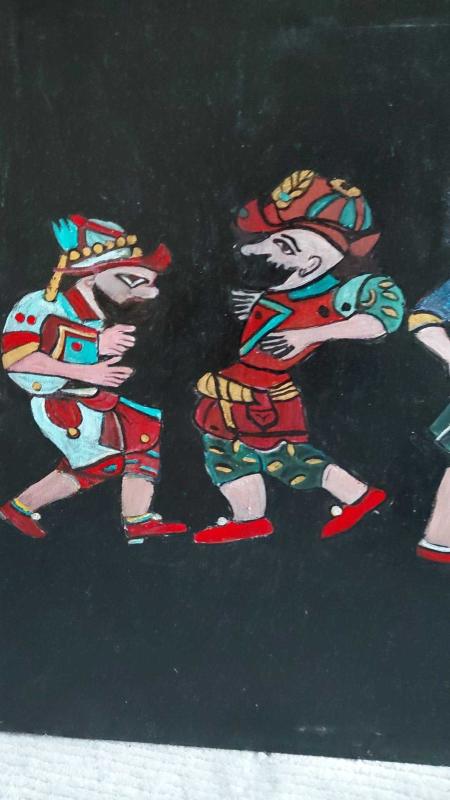 Osmanlı döneminin renkli karakterleri, Karagöz geleneğinden ilham alan figürlerle bu özel çalışmada bir araya geliyor. Siyah zemin üzerine akrilik boya ile çalışılmış; her figür tek tek elde detaylandırılmıştır. Minyatür estetiği, halk tiyatrosu ruhu ve tarihsel anlatımı aynı yüzeyde buluşturan koleksiyonluk bir eser. Uzun form ölçüsü sayesinde mekânda güçlü bir odak noktası oluşturur. 🎨 Teknik: Akrilik boya 📐 Ölçü: 140 x 56 cm 🖐️ El işi – tek parça 🏛️ Antika & dekoratif sanat koleksiyonuna uygundur