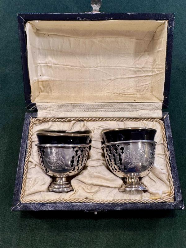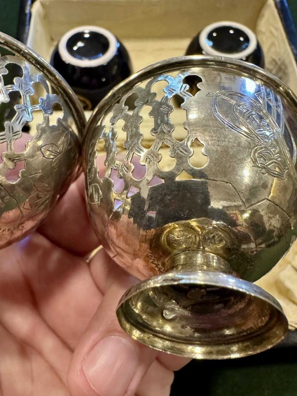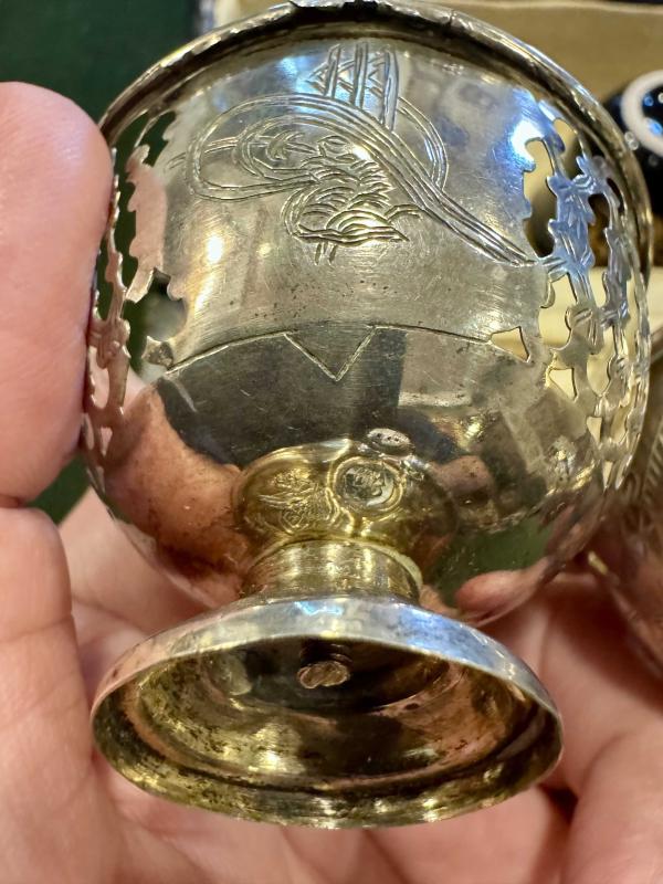 Osmanlı Gümüş İkili Fincan Zarfı başlıklı antika/koleksiyon objesi Osmanlı menşe’lidir. 1900 öncesi dönemine aittir.