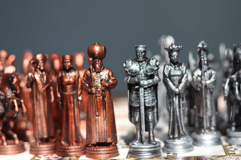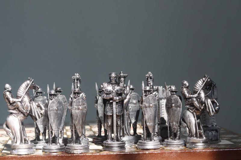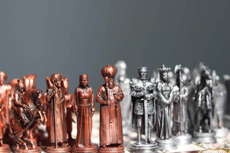 Osmanlı İmparatorluğu -Bizans İmparatorluğu Temalı Yüksek Kalite Satranç Seti (Gümüş/Bakır Renk) başlıklı antika/koleksiyon objesi Türkiye menşe’lidir. 2000 ve sonrası dönemine aittir.