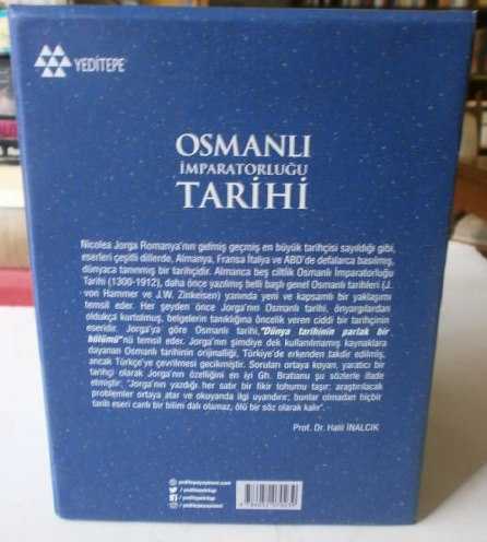 Osmanlı İmparatorluğu Tarihi 1300 - 1912 , 5 Cilt Takım, Nicolae Jorga tarafından kaleme alınmıştır. Eser Erhan Afyoncu editörlüğünde hazırlanmıştır. Kitap 2017 yılında Yeditepe Yayınları tarafından [İstanbul] yayınlanmıştır. Satışta olan kitap, yayınevinin 5. baskısıdır. Bu baskının çevirisi Nilüfer Epçeli tarafından yapılmıştır. Sayfa bilgisi 497+455+487+515+646 olarak belirtilmiştir. Osmanlı İmparatorluğu Tarihi 1300 - 1912 , 5 Cilt Takım adlı eser Türkçe dilindedir.