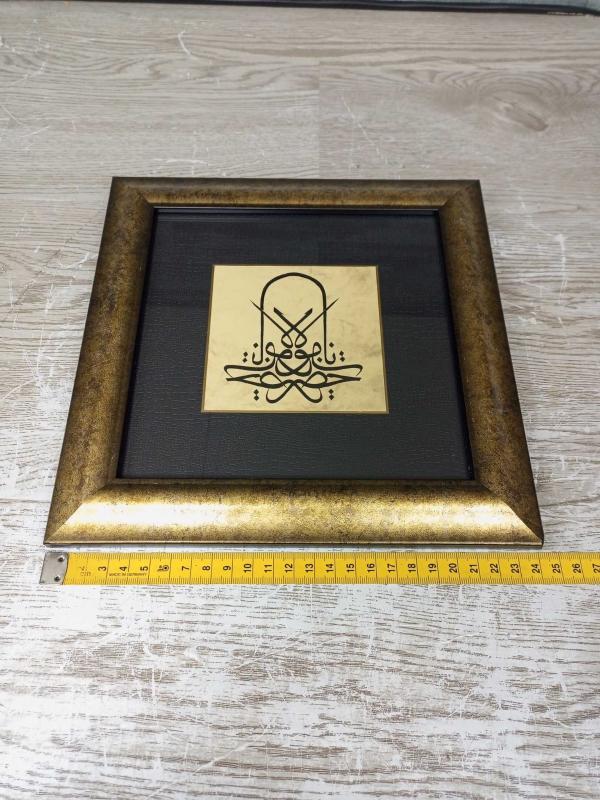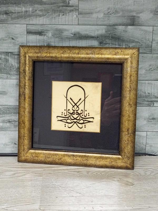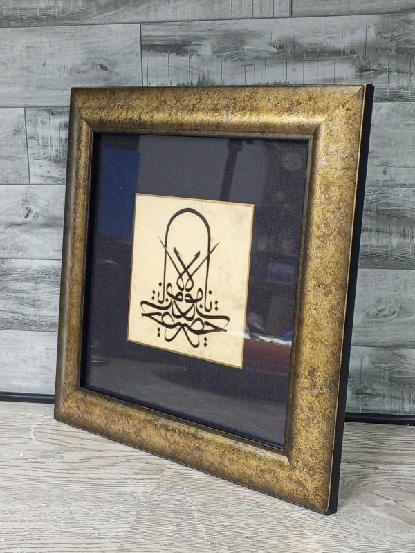 Koleksiyonluk değer taşıyan, Mevlevi derviş sikkesi formunda istiflenmiş, yüksek sanat kalitesine sahip el çekme hat tablosu. Hem dekoratif hem de manevi derinliği olan bu eser, geleneksel sanat meraklıları için nadide bir parçadır. Ürün Detayları ve Sanat Analizi Hat Sanatı: Eser, Mevleviliğin sembolü olan "Sikke" (destarlı sikke) formunda tasarlanmıştır. İstif İçeriği: Hat istifinde "Ya Hazret-i Mevlana" ibaresi, aynalı (müsennâ) ve simetrik bir kompozisyonla kaleme alınmıştır. Teknik: Tamamen el işçiliği (el çekme) olup, mürekkep kullanımı ve kalem işçiliği net bir şekilde görülmektedir. Zemin: Eskitme efektli, dökümlü özel kağıt üzerine çalışılmıştır. Kondisyon ve Sunum Çerçeve: Eserin ruhuna uygun, altın varak görünümlü antik eskitme geniş çerçeve kullanılmıştır. Paspartu: Deri dokulu siyah paspartu ve altın rengi iç bordür ile eserin merkezdeki görselliği ön plana çıkarılmıştır. Durum: Kusursuz kondisyondadır. Camlıdır, arkasında askı aparatı mevcuttur; doğrudan asılmaya hazırdır. Kullanım Alanları Antika koleksiyonları, ofisler, evlerin başköşesi veya anlamlı bir hediye olarak değerlendirilebilir. Mevlevi kültürünün zarafetini ve huzurunu yansıtan bu tablo, sergilendiği ortama manevi bir atmosfer katar. Not: Fotoğraflarda görülen ürünün aynısı gönderilecektir. Detaylar için fotoğrafları inceleyiniz.