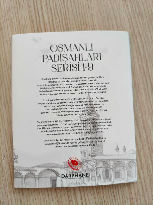 Darphane Osmanlı Padişahları Serisi 1-9 İlk 9 padişah. Her padişahın ayrı sertifikası vardır. EL değmemiş çil. Sertifika numarası farklı gönderilecektir. Sitede en ucuz fiyatla satıştadır.