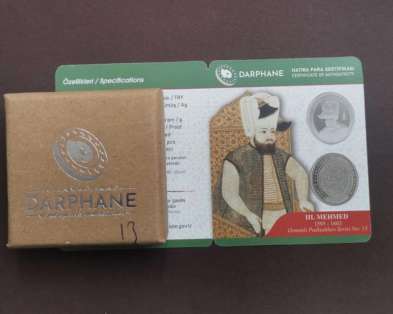 Osmanlı padişahları no: 13, III. Mehmed darphaneden geldiği gibi poşetli ve kutulu SERTİFİKASI mevcut. Uygulamanın En #uygun fiyatı