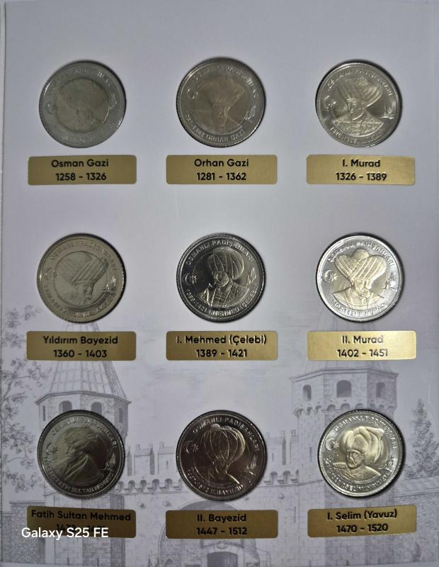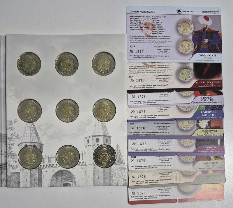 Osmanlı Padişahları1- 9 u 1 Set,de orjinal Darphane Albümünde Her biri Sertifikalıdır, en son 4 gün önce güncellenmiştir.