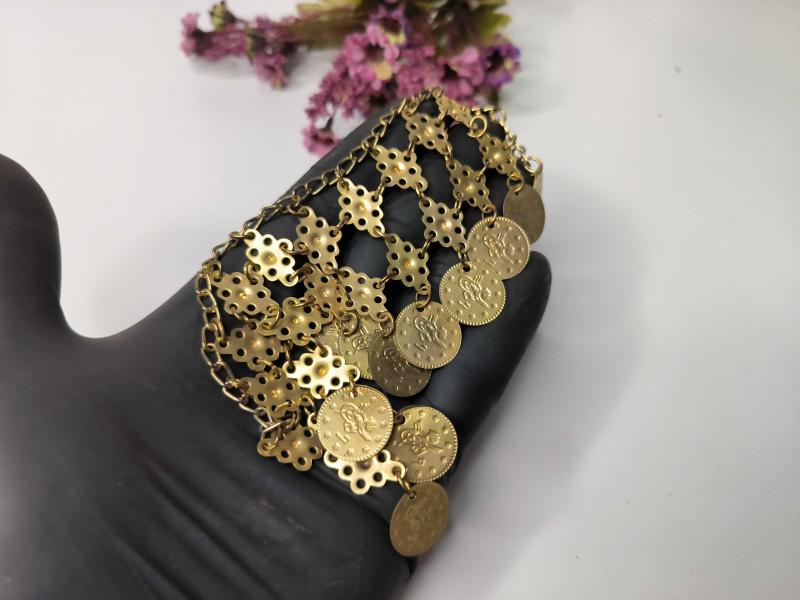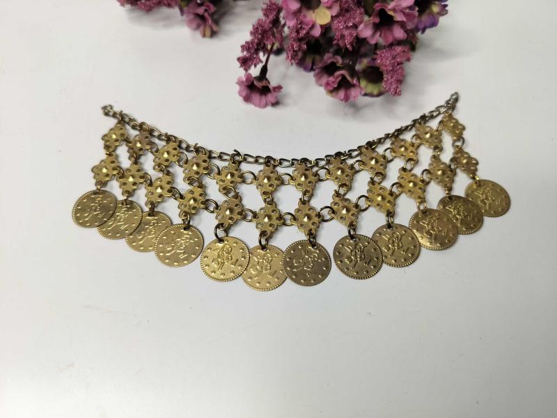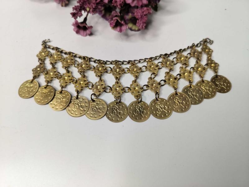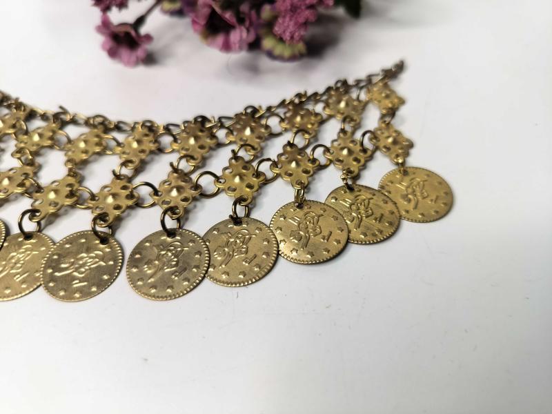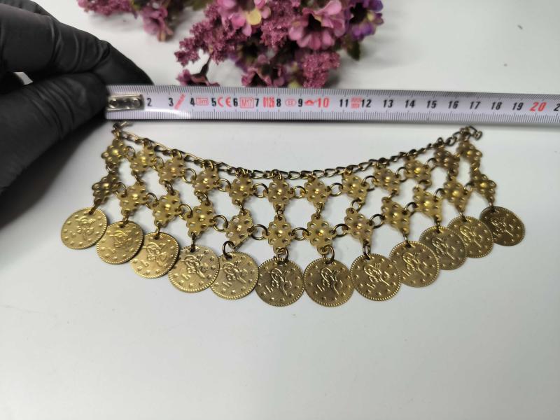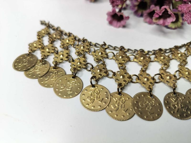 Antik tarzı metal kolye Osmanlı Paralı.... Altın sarısı ince metal - Takı Eski - Temiz- Sağlam Ölçü Sonda - İade Yoktur